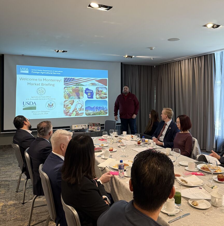 In late February 2026, staff from DATCPs International Agribusiness Center partnered with Wisconsin Economic Development Corporation (WEDC) in recruiting and attending the WEDC Trade Mission to Monterrey and Mexico City, Mexico. Staff from The Delong Company, Actus Nutrition, Cheese Merchants, Hoards Dairyman Creamery, and Dairy Farmers of Wisconsin represented the agricultural companies; and Vintage Parts, Wisconsin Aluminum Foundry, and SDMC America represented the manufacturing companies. Together, the businesses completed over 120 business meetings to expand their sales in Mexico.