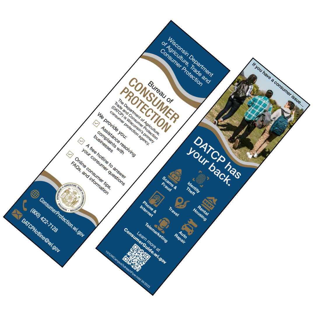 DATCP's Bureau of Consumer Protection offers a variety of materials that can be printed, ordered, or accessed online related to financial literacy in the form of consumer protection issues impacting young adults. Explore and access these resources below.