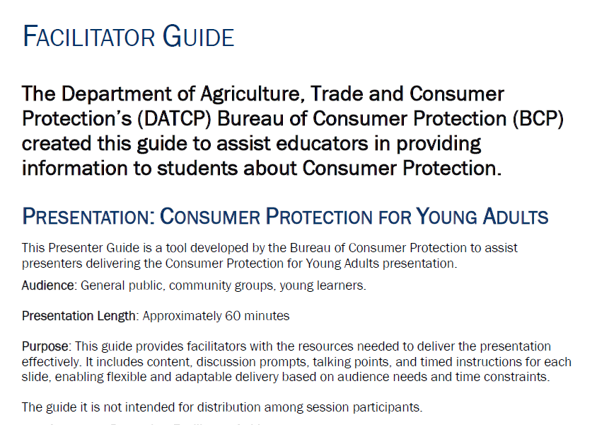 Access more DATCP resources on Consumer Protection for Young Adults: