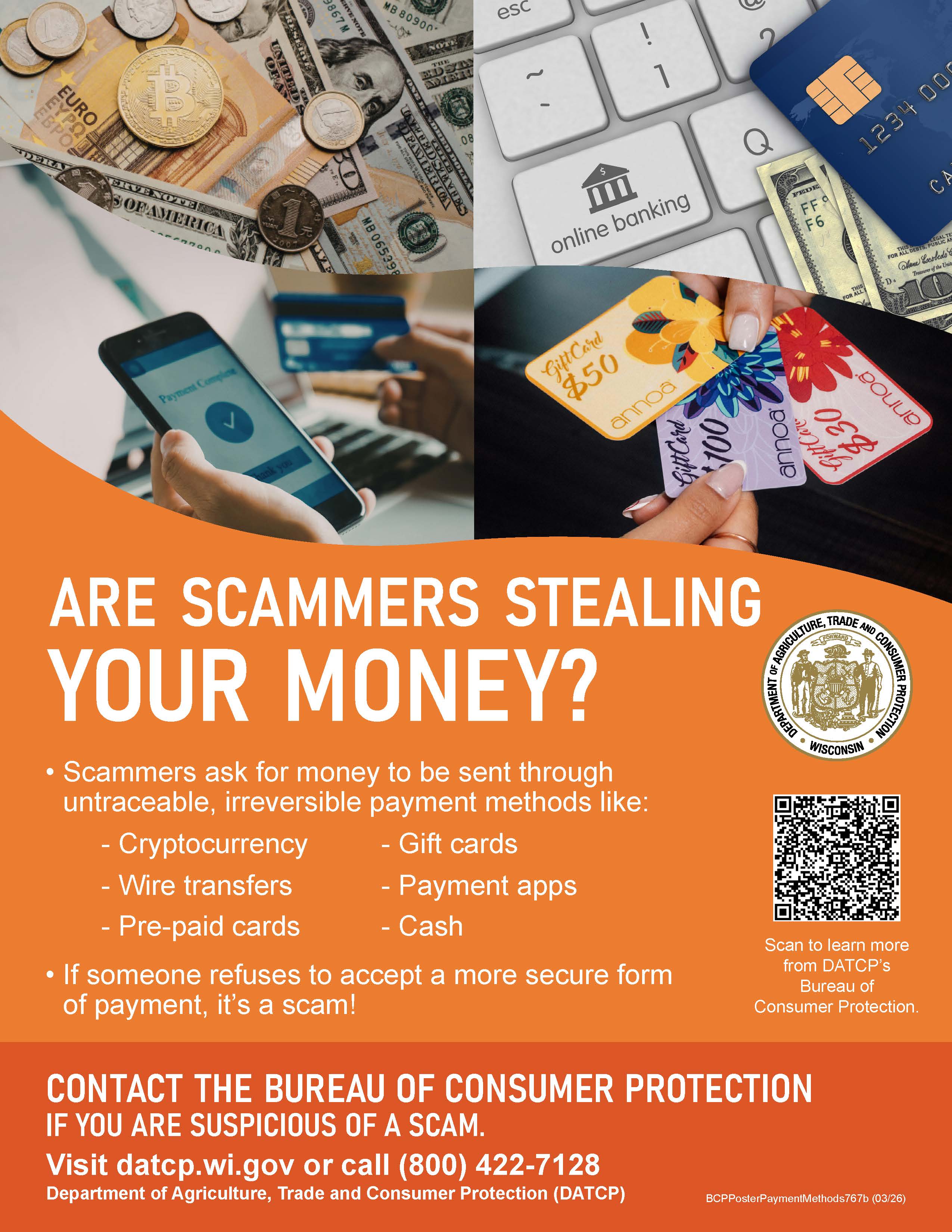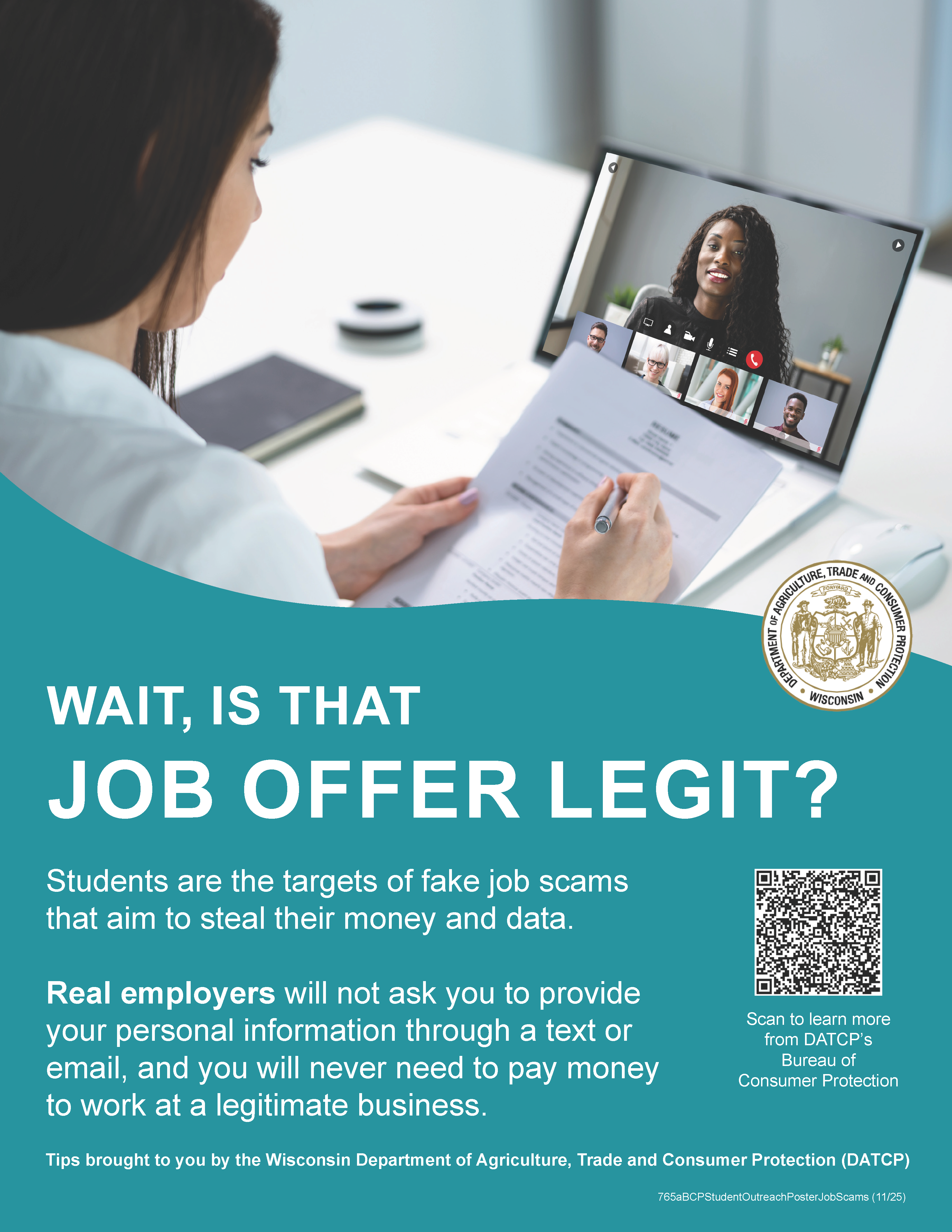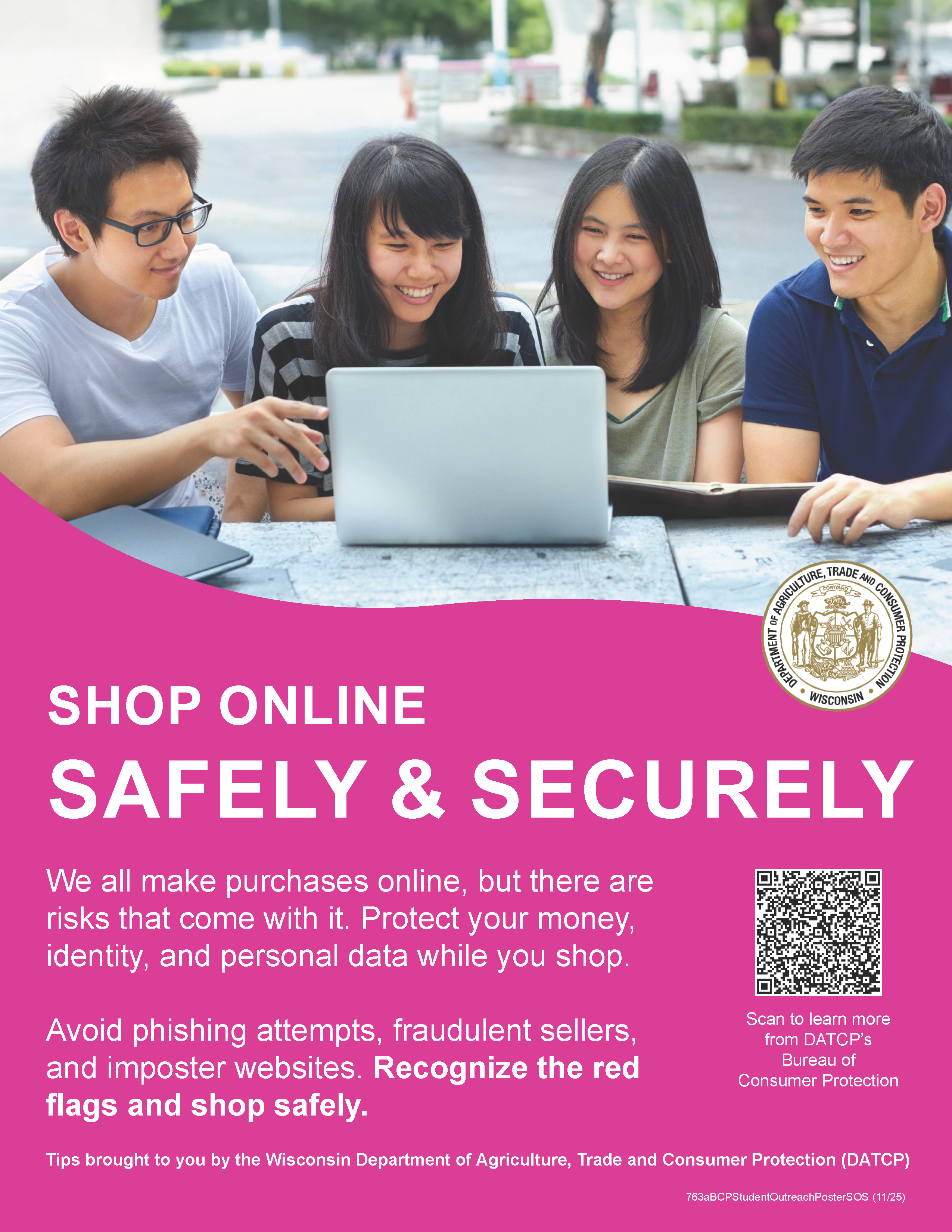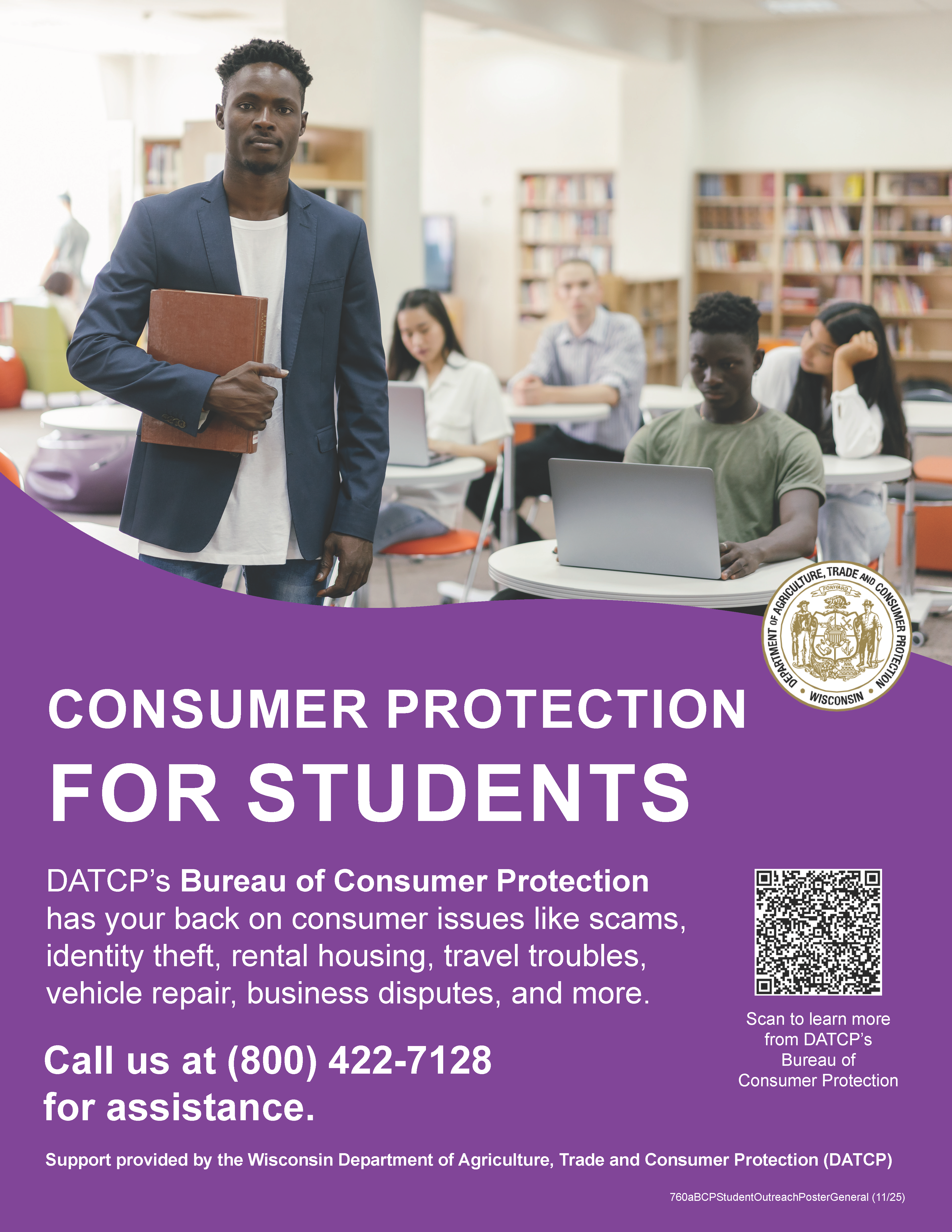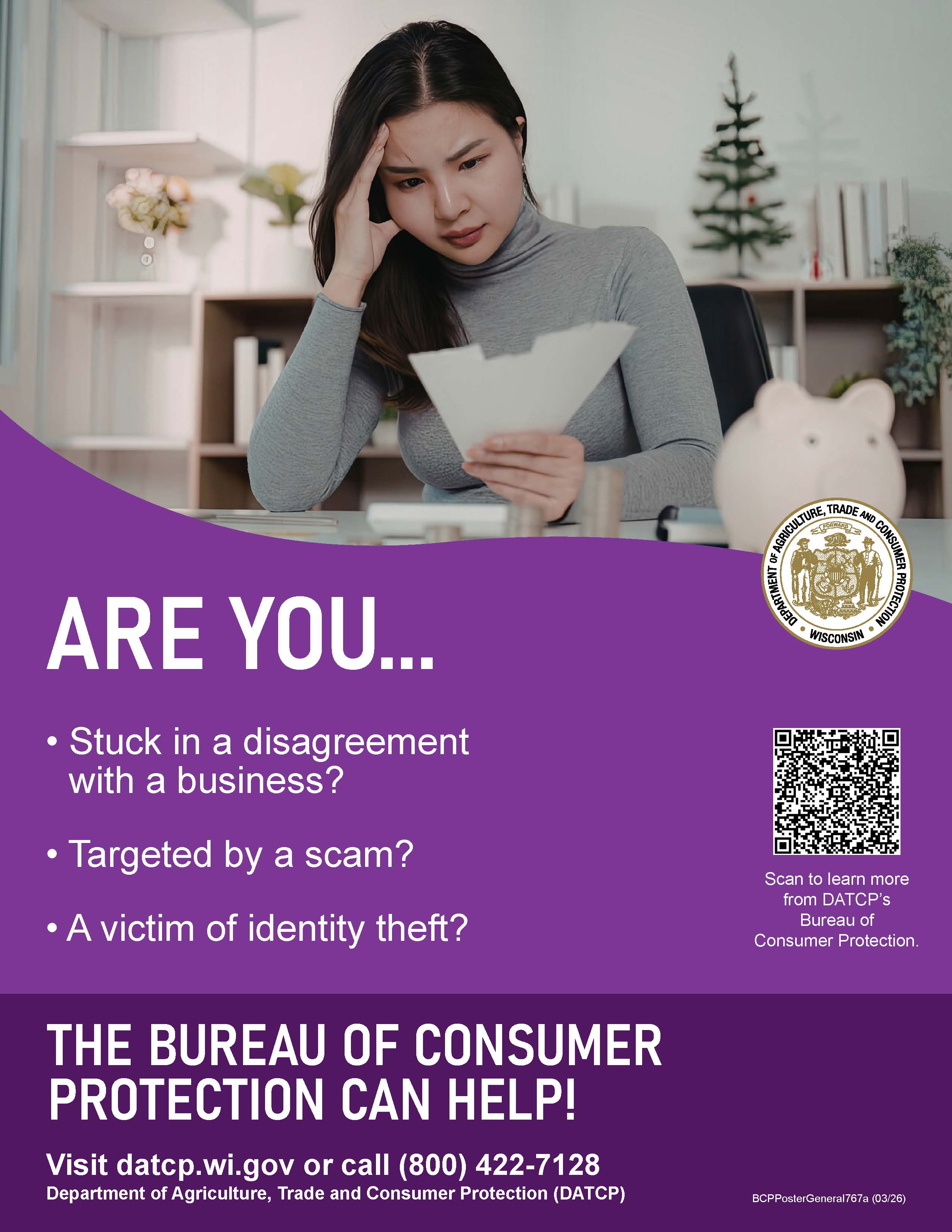 DATCP's Bureau of Consumer Protection offers a variety of posters that can be downloaded and printed to help promote consumer protection awareness on a variety of topics for your school, library, community, business, doctor's office, or organization. Explore and access these resources below.