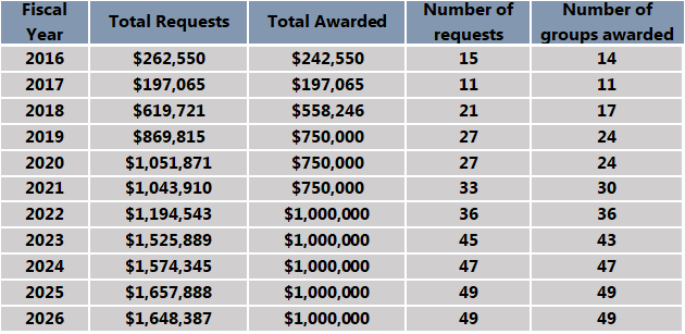 Producer-Led Grants Funding Summary 2016-2026